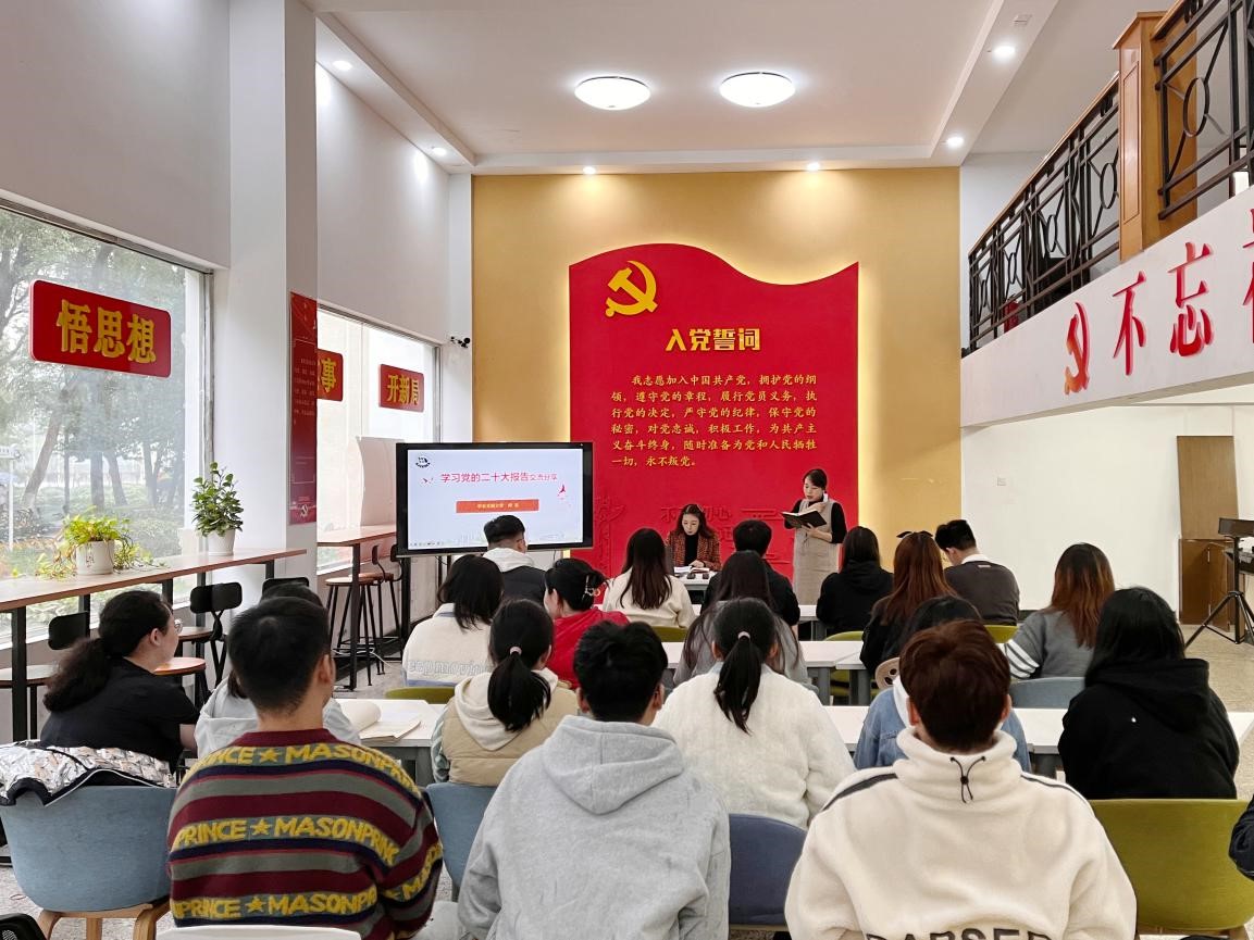 在党课活动现场,师星结合党的二十大报告,从新时代十年伟大变革的里程碑意义、马克思主义中国化时代化的精神实质、中国式现代化的丰富内涵和本质要求、全面建设社会主义现代化国家的目标任务、以党的自我革命引领社会革命的重要要求等方面作了系统梳理和深入阐释。同时针对青年大学生为什么要学、怎么学与同学们展开交流与分享。她表示,党的二十大报告强调全党要把青年工作作为战略性工作来抓,体现出党对广大青年的成长寄予厚望。新时代是广大青年成就梦想的时代,我们要认真学习领会党的二十大精神,不负时代召唤,争做有理想、敢担当、能吃苦、肯奋斗的新时代好青年。