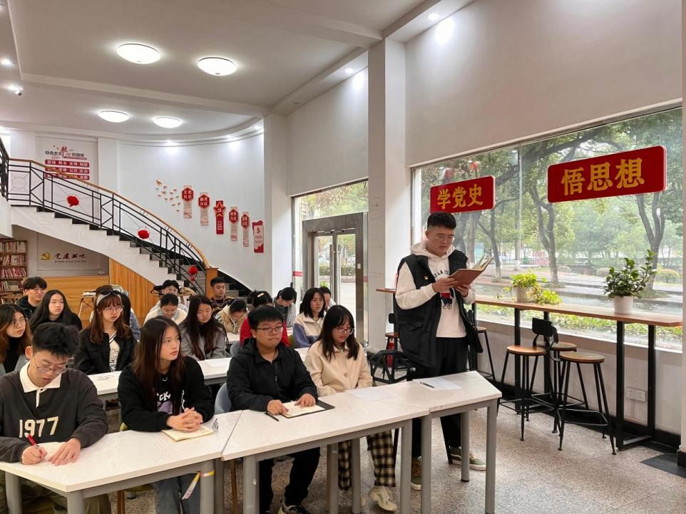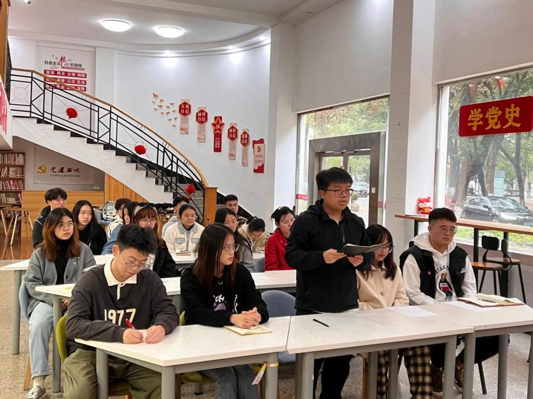 党委委员、创新创业学院院长师星为工程管理学生党支部开展专题党课,重点传达学习了党的二十大精神,并与支部成员进行交流分享。本次党课活动由工程管理学生党支部书记黄亚玲主持,支部全体党员、部分入党积极分子参加。