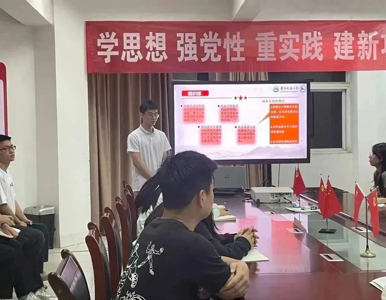 随后,进行业务培训,学院党教中心负责人阐述了党教中心各部门职责分工,并强调了学生党支部与党教中心各部门对接注意事项,同时围绕“党建责任清单”对各学生党支部工作提出了一些要求和意见。