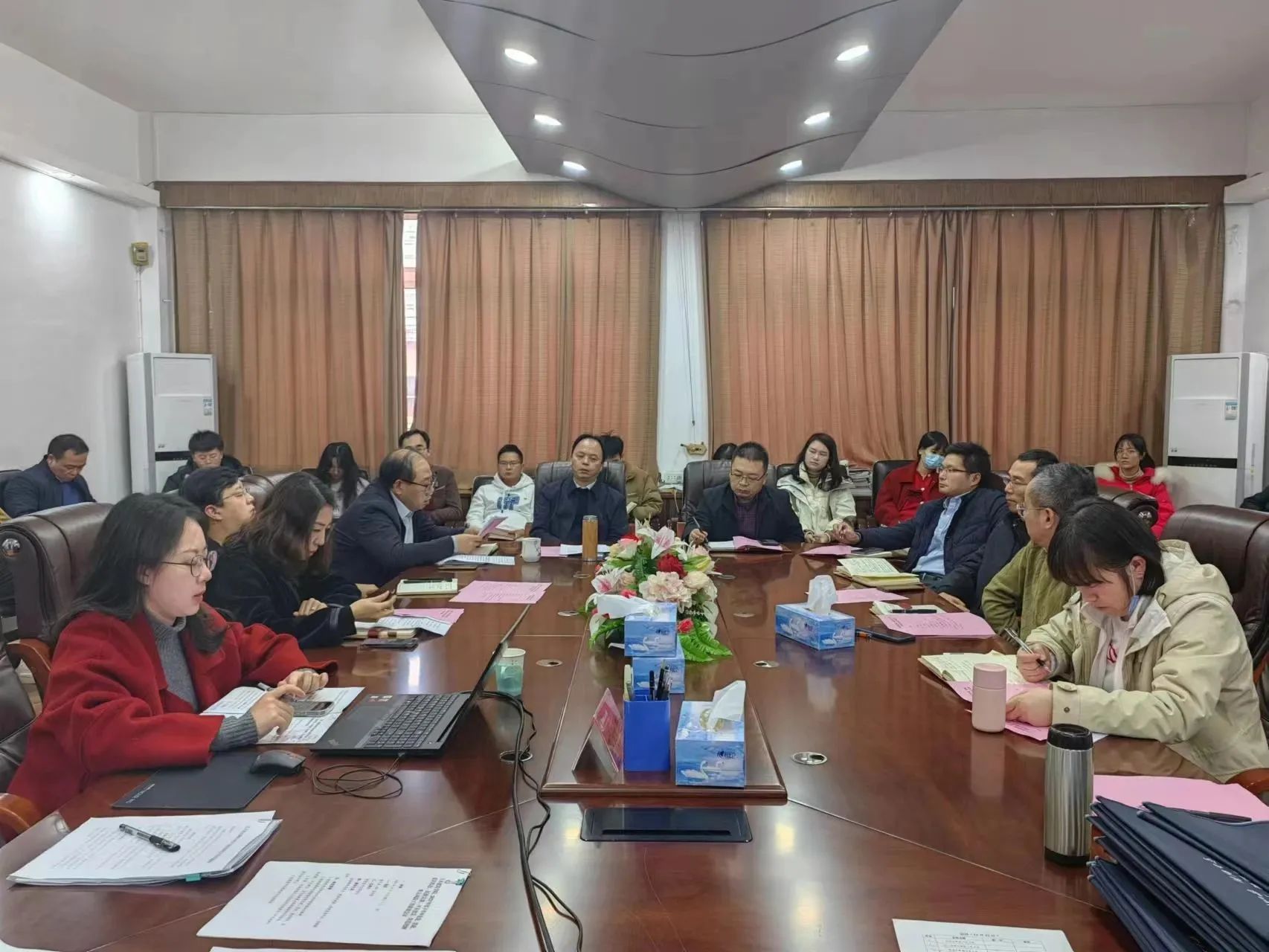 于12月13日下午召开党建、思政、意识形态、民族宗教、平安建设、防范化解重大风险工作联席会议。学院各党委委员、院班子成员、各党支部书记及全体辅导员参加会议,院党委书记陈水生主持会议。