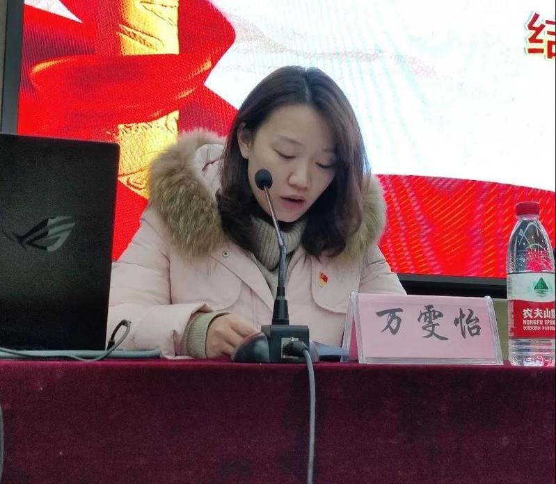 第二项议程,分党校班主任万雯怡老师宣读了优秀学员的名单。万雯怡老师对获得了优秀学员的同学表示了祝贺,同时,希望优秀学员们以此培训班为节点,再接再厉,在未来的学习和生活上都能够成为同学们的表率。