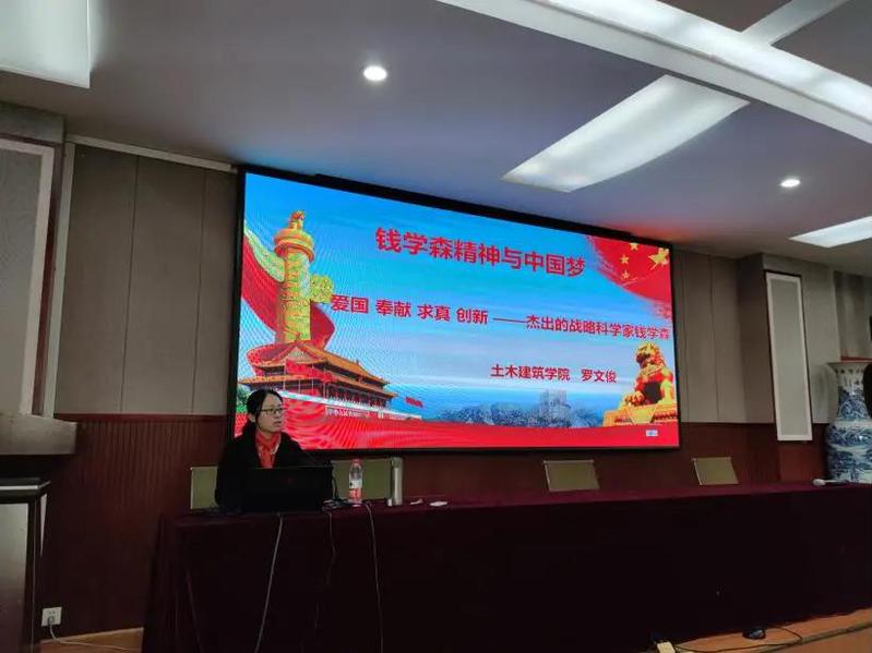 院长罗文俊为防灾桥隧力学研究生党支部讲授了一堂生动丰富而带有重要教育意义的党课,主题为“爱国、奉献、求真、创新—杰出的战略科学家钱学森”。