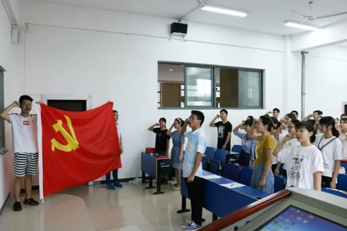 会议最后,由朱金贤带领全体人员宣读入党誓词。