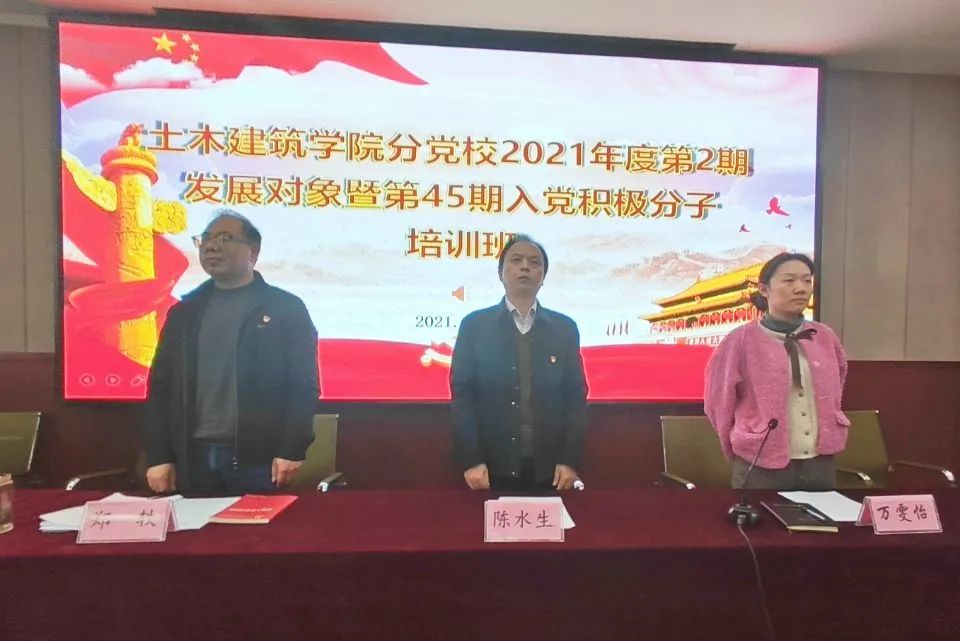 在庄严的国歌声中,土建学院分党校2021年度发展对象暨入党积极分子培训开班典礼拉开帷幕。