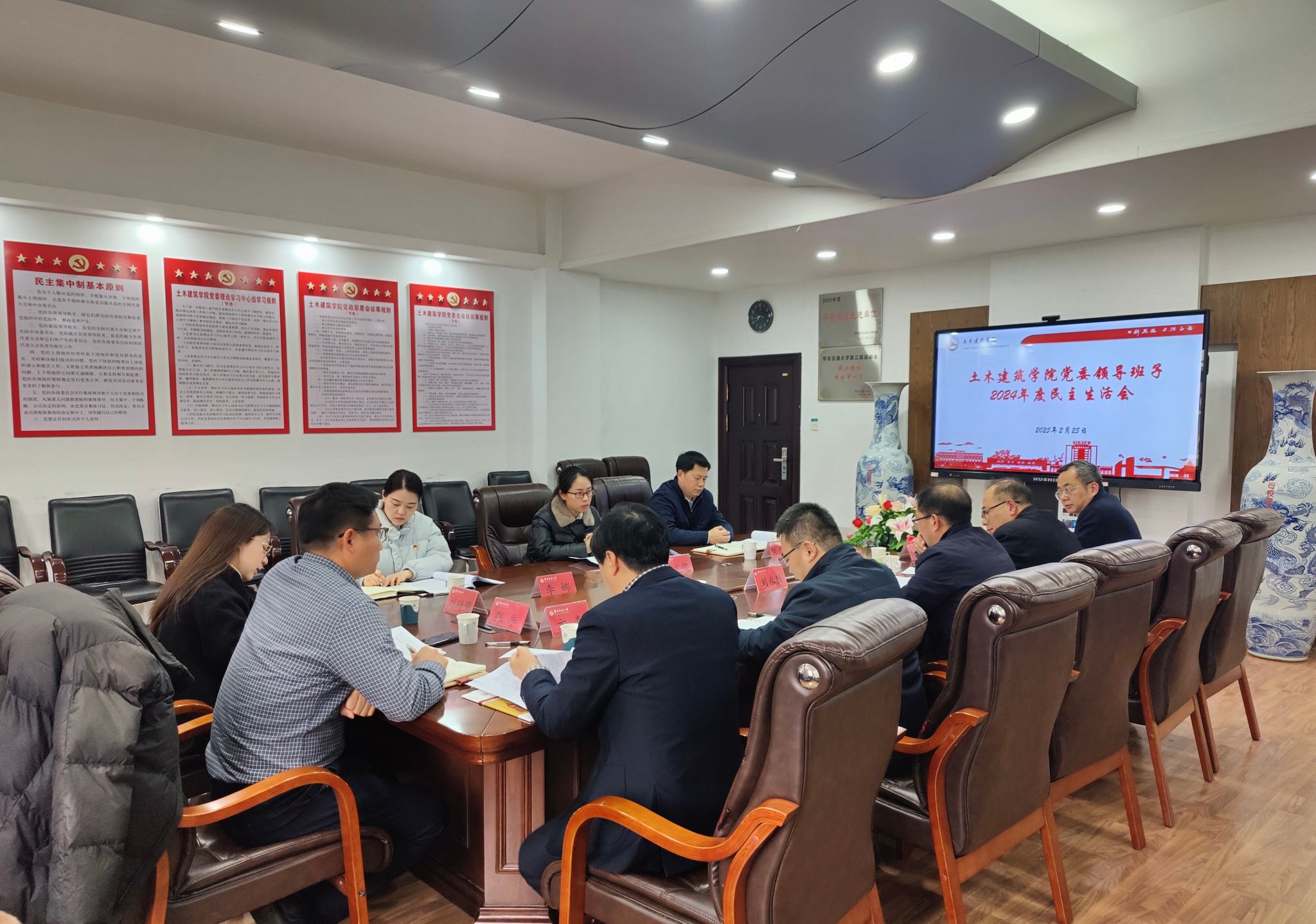根据学校统一部署,2月25日下午,学院召开2024年度党委领导班子民主生活会。校党委副书记罗文俊,校党委委员、党委组织部部长陈沈平,校纪委综合办公室信访审理科科长李娜列席督导,学院党委领导班子成员、师生党员代表、民主党派代表参会。