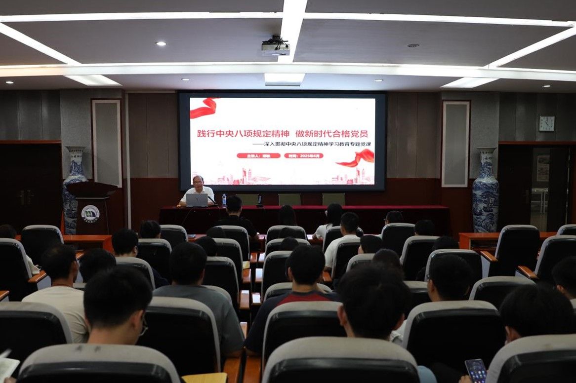 院党委委员、副院长方焘联系岩土工程研究生党支部和桥梁研究生党支部,以“贯彻落实中央八项规定精神学习教育”为题讲授专题党课。首先明确了深入贯彻落实中央八项规定精神的重大意义。他强调,全体党员必须深刻认识中央八项规定精神的重要性,时刻保持高度警醒,自觉筑牢思想防线,将纪律规矩内化于心、外化于行。