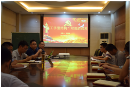 宣传委员石钰锋同志分享微党课——“工字型结构”对我的启发。石钰锋同志以对祖国和民族的热爱和激情为出发点,深入展开思考,认为作为一名中国共产党员仅仅有上述感情是远远不够的,还需要在拥有前两者的基础上不断提升自己的能力。课后支部党员同志开展了热烈讨论,曾润忠、黄大维、王宁等同志发言,达成了一起努力的共识。