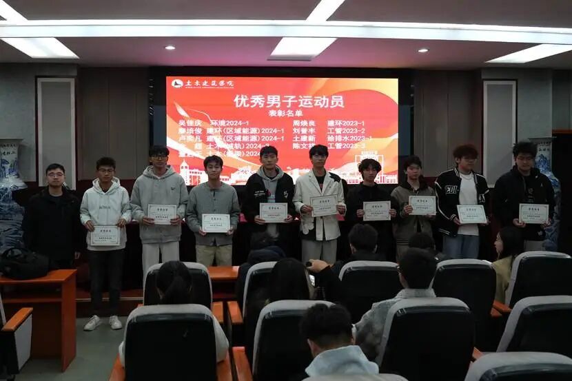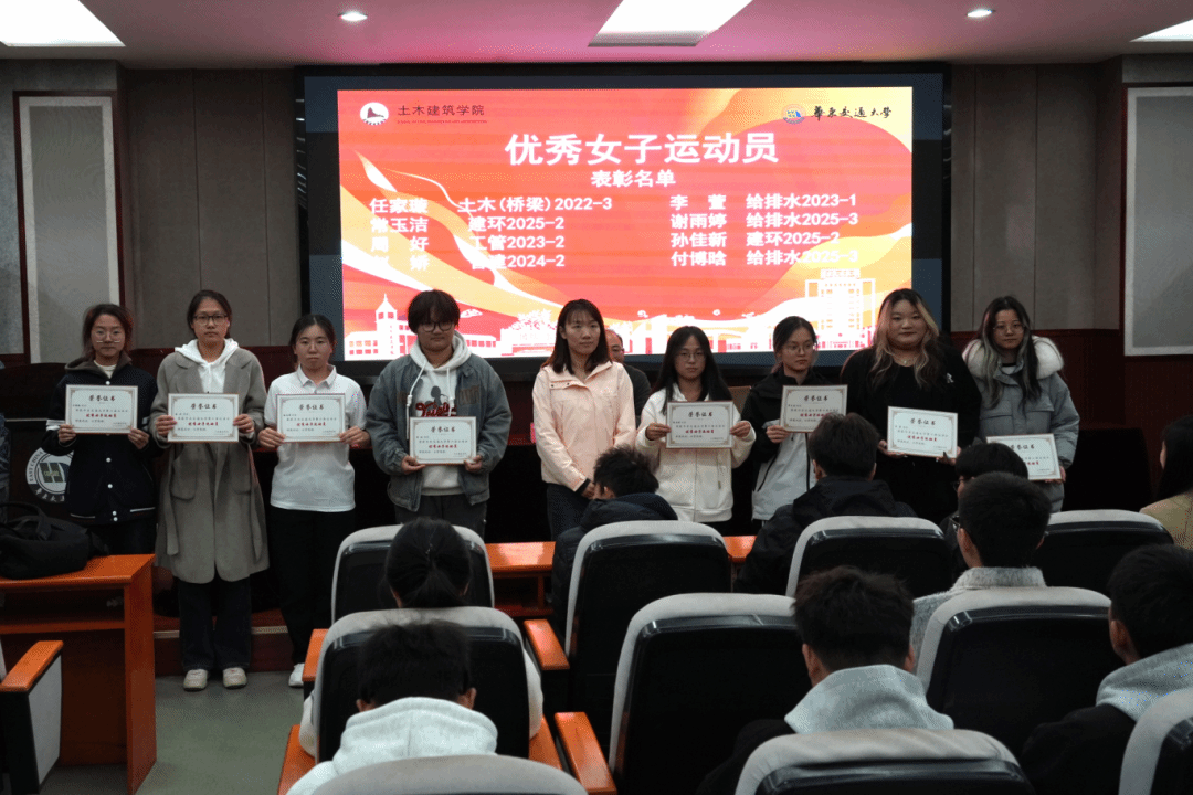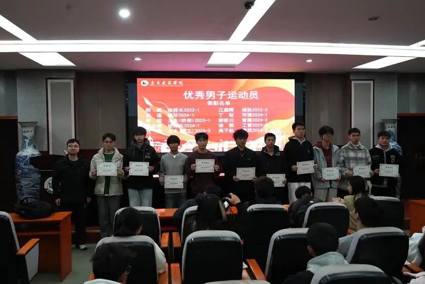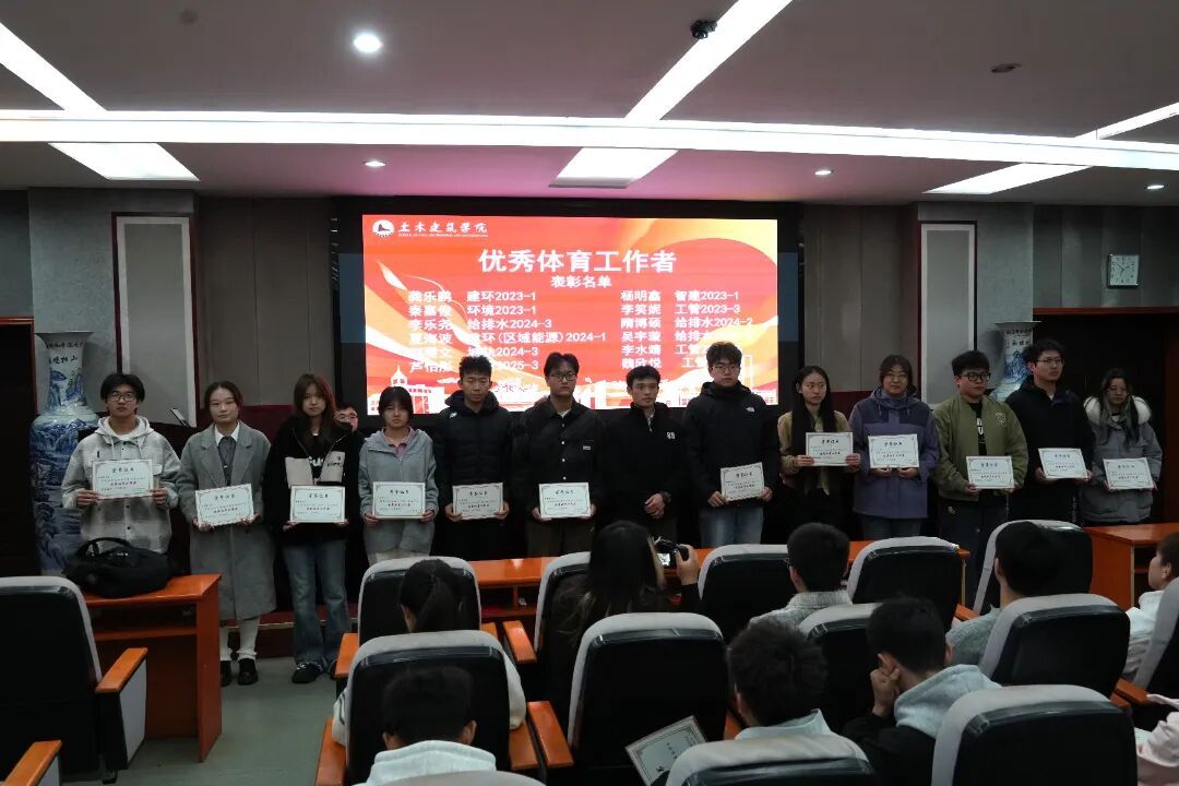 于土建楼200报告厅隆重举行第六届校运会表彰大会。学院党委副书记郑轶、团委书记兼学工办主任万雯怡、兼职团委副书记严安迪出席本次大会。会议由学院学生体育负责老师黄伟豪主持,全体田径运动员、各院队成员代表、及体育工作者共同参加。