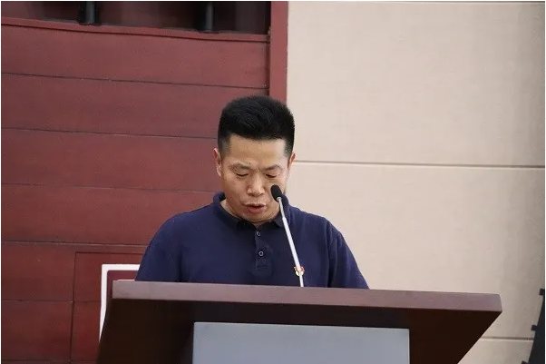 徐长节宣读学院优秀党员、优秀党务工作者、先进新时代基层党支部、“学习强国”学习标兵及优秀党支部的表彰决定,并颁发证书。
