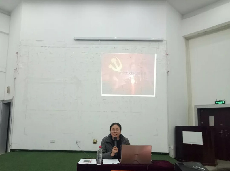 本次党课主讲人高婷婷主要从社会主义核心价值观的现实意义、价值观的内涵、培养价值观的根本途径来介绍。党课伊始,主讲人由党的16届六中全会和党的十七大报告分析出了社会主义核心价值观的由来。社会主义核心价值观能够引领社会思潮、凝聚社会共识的现实意义,说明了党员加强社会主义核心价值观能够推进中国特色社会主义理论武装全党、教育人民。在第二部分的介绍中,她提出社会主义核心价值观内还不仅仅是表面的24个字。而是要深入地理解其根本含义。理解社会主义的真实内涵是经济社会和谐稳定,持续健康发展的基本保障。