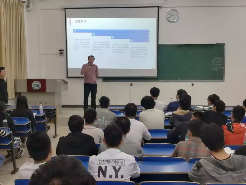 然后,余剑威同学主要介绍了“互联网+”大赛的比赛背景及报名方式、近期的建模大赛和结构设计竞赛的进程,通过分享往届创新创业类大赛获奖学长实例,号召各班科创委员积极发动学生工作响应团委关于加强大学生创新创业的指示。