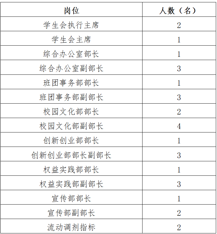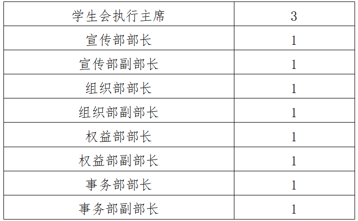 学生会秘书处设工作部门6个,选聘主席团成员3名,总人数不超过30人。