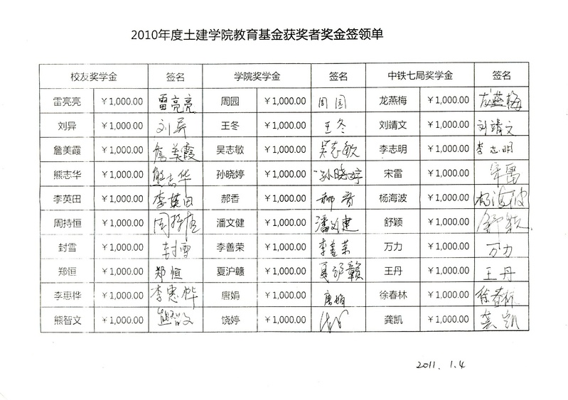 2010教育基金奖金签收单