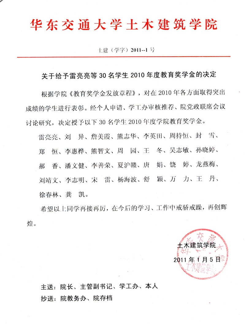 2010年教育基金奖励名单