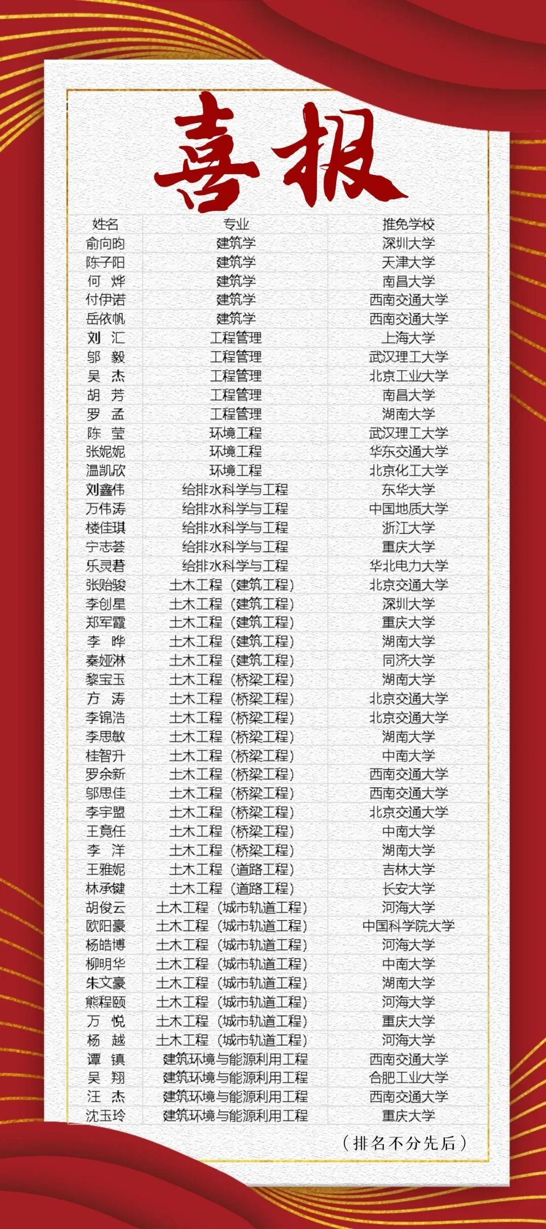 本届推免生中,共有17人被985高校录取,25人被211高校录取,其中不乏浙江大学、中国科学院大学、同济大学、天津大学、中南大学等多所国内高水平大学。同学们凭借扎实的专业功底、出色的综合素质与不懈的拼搏精神,赢得了众多知名高校的认可,充分展现了91网站
