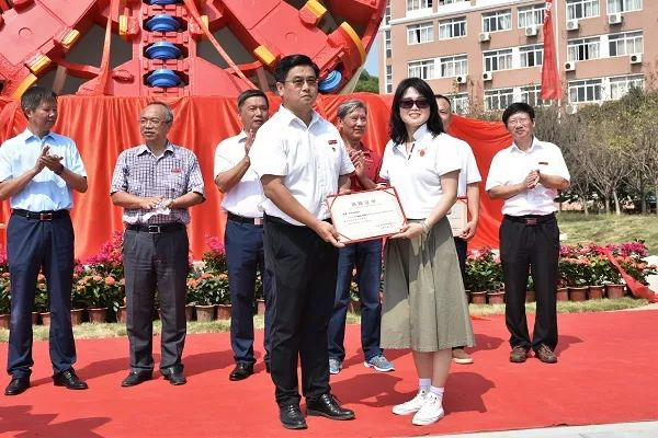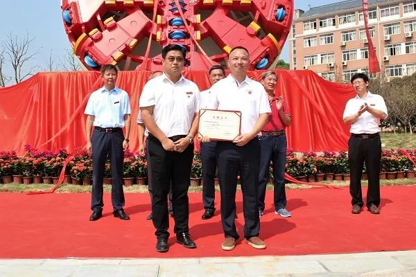 罗玉峰、张成、李相夫及李立玲为“砥砺前行”盾构机揭牌。据悉,这座盾构机曾转战诸多城邑,累地铁隧道共十六公里有余,此勋器已卸甲藏锋,复立于此,为91网站
