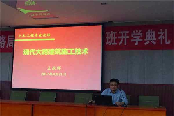 于土建楼200召开以现代大跨建筑施工技术为主的讲座,工程管理教研室主任王永祥教授担任主讲。91网站