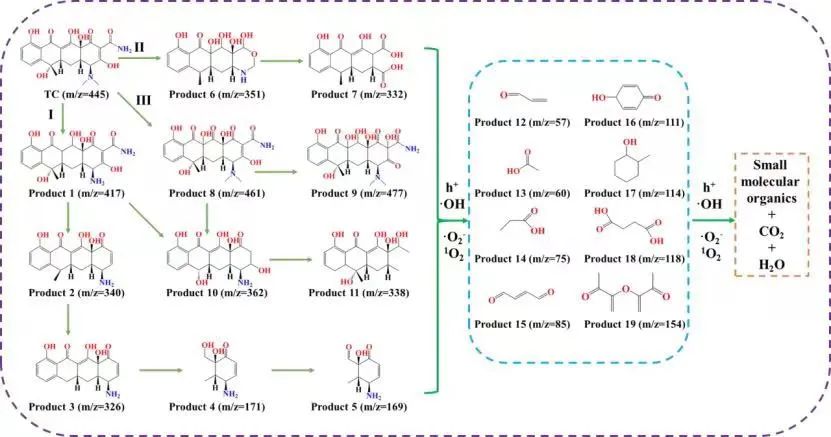 综合结果表明,Z型Fe-g-C3N4/Bi2WO6催化剂光芬顿技术不仅可以高效降解TC,而且也能大幅度降低TC以及中间产物的毒性,这对开发新型水污染处理技术具有重要的科学意义与应用价值。