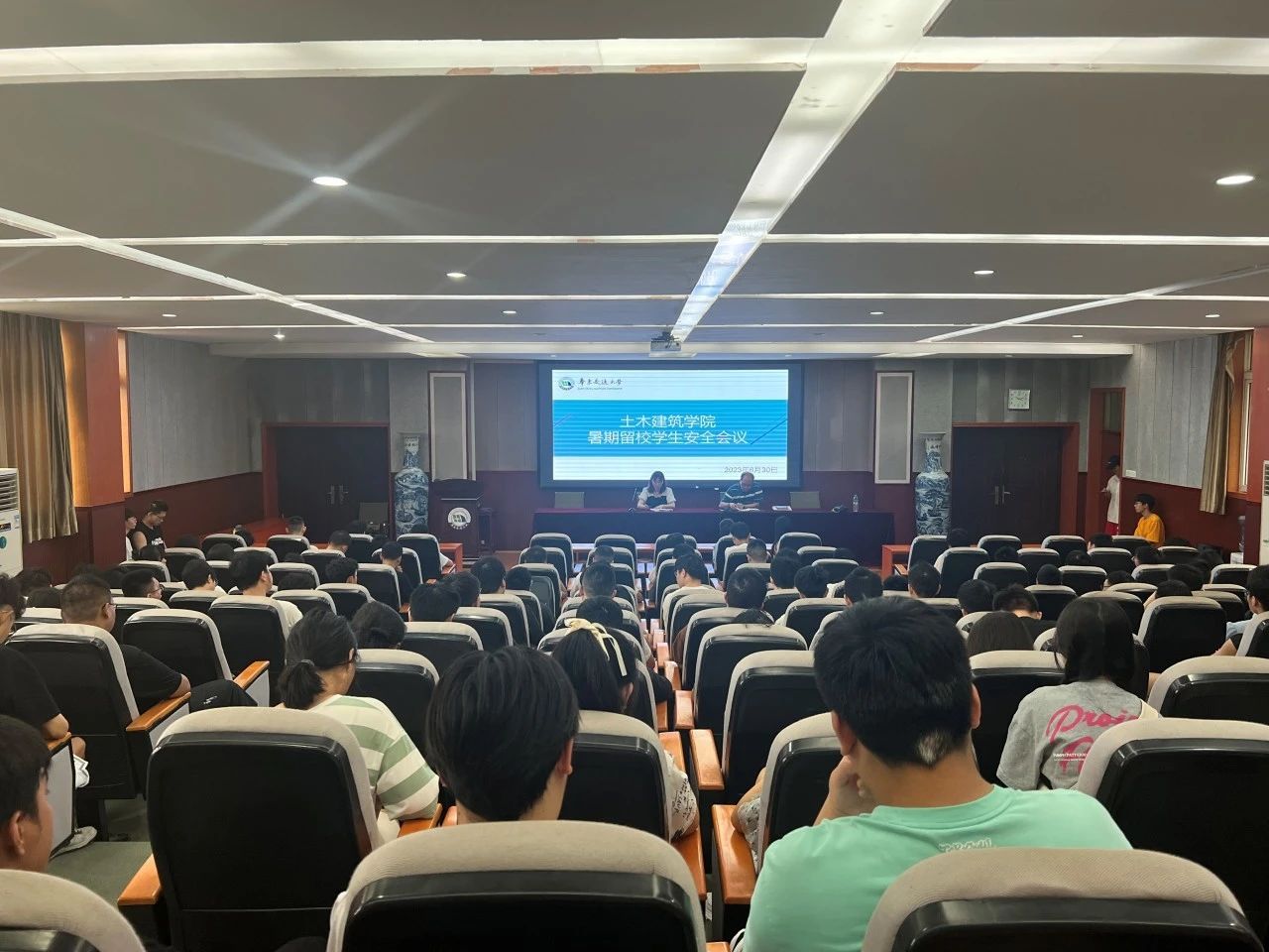 于土建楼教9栋200会议室分别召开了本科生、研究生暑期留校学生安全会议。党委副书记郑轶出席此次会议,学工办主任、团委书记万雯怡、相关辅导员及留校同学们参加了本次会议。