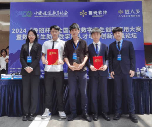 工程管理系组建了“绩点爆炸队”(孙豪文、胡伊脉、高天妮、马乐钦、苏航)、“薪火逐梦队”(李敦升、高文、罗佳伟、王星迪,朱修莹)、“砼心圆青春队”(方权、黄先棋、廖雨欣、温天植)参加2024年“鲁班杯”全国高校数字孪生创新应用大赛。参赛团队从备赛、BIM模型创建、施工管理到BIM综合应用,历时5个多月。在整个过程中极大地提高了学生们的BIM应用技术能力和专业技能应用能力,最终在全国205所高校915支队伍中脱颖而出,分别获得全国一等奖、二等奖和三等奖。