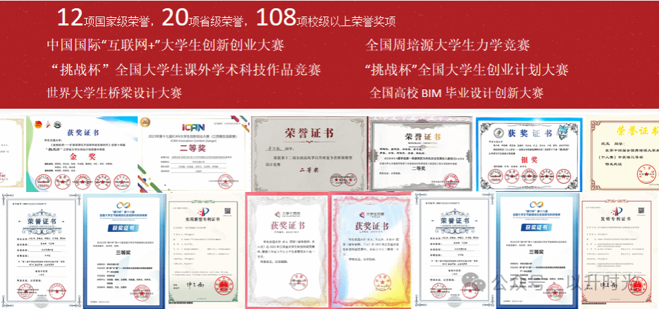 在此育人模式下,学生们在低年级就有机会进入课题组参与科研项目与课题实验,并在老师的引导下积极参与中国国际大学生创新创业大赛、“挑战杯”全国大学生课外学术科技作品竞赛、全国大学生结构设计大赛等学科竞赛,取得优异成绩。浓厚的学科竞赛氛围也带动班级形成“比学赶超”的学习风气,促进学生全面发展。
