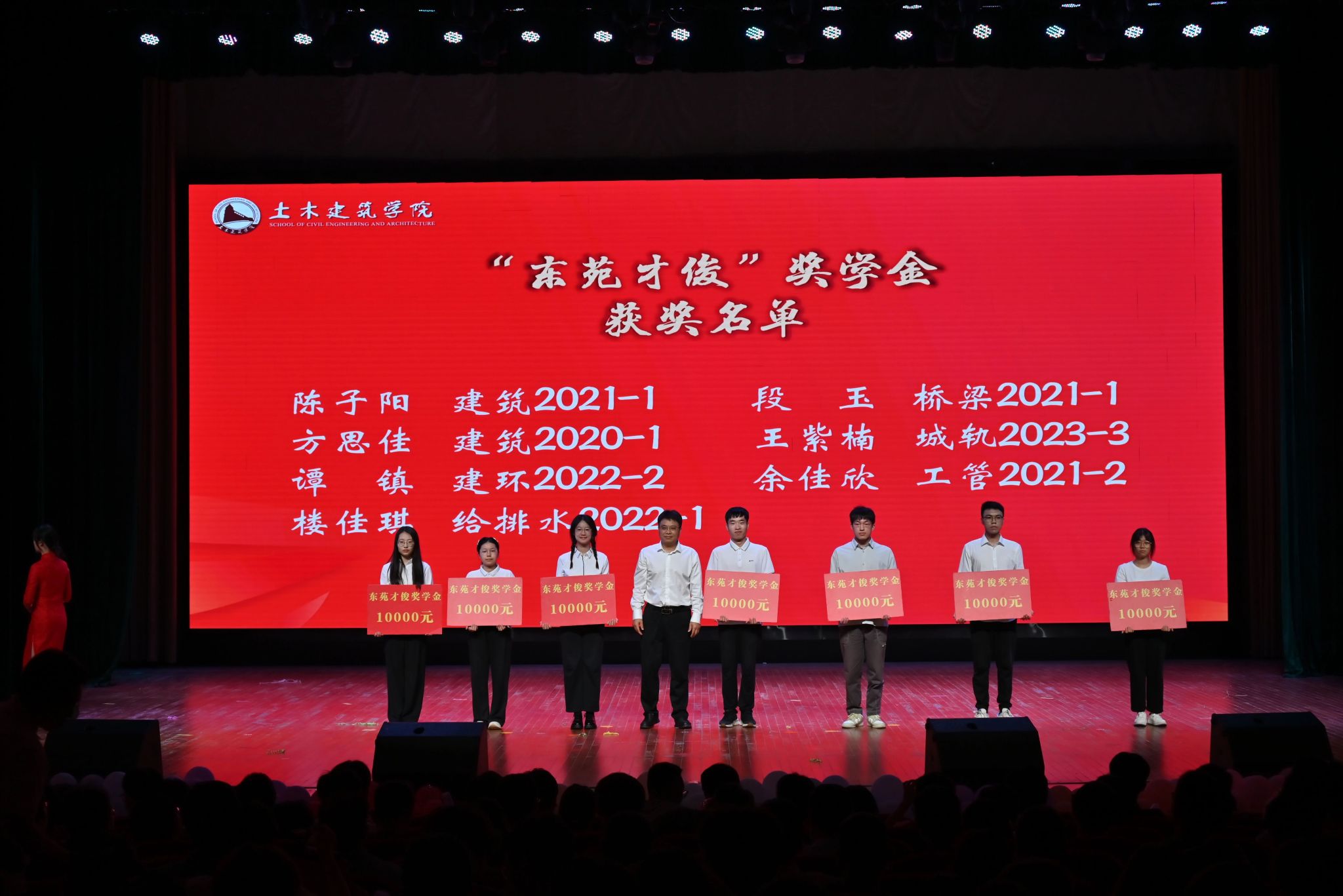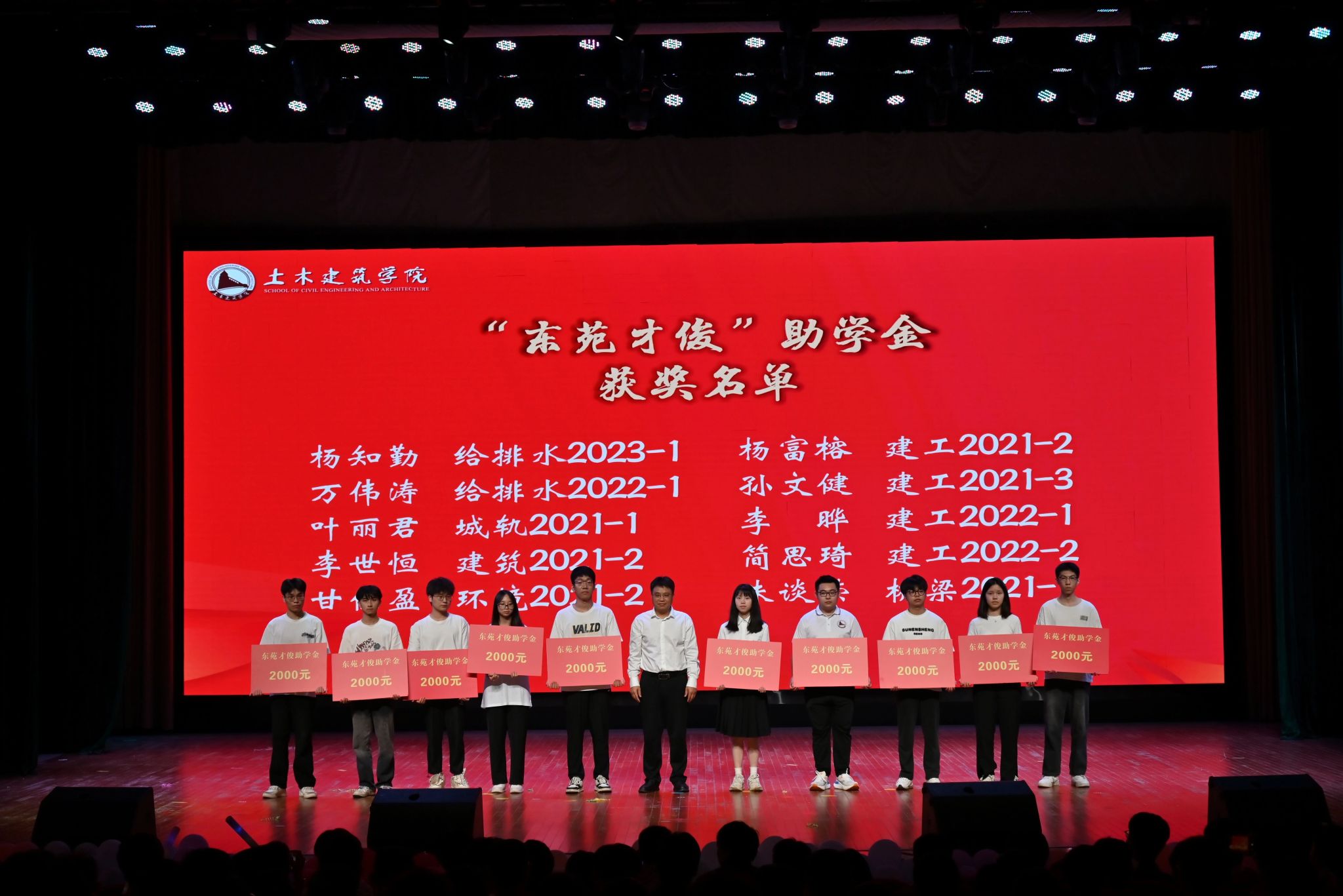 共同为获得学院奖学金学生颁奖