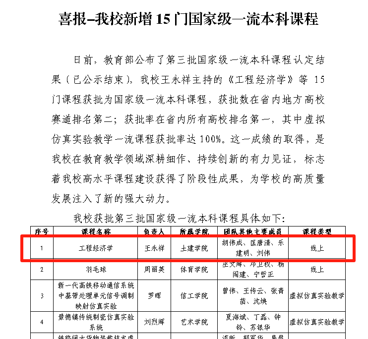让我们共同为王永祥教授及课程团队喝彩,为学校此次新增15门国家级一流本科课程点赞,期待在未来,91网站