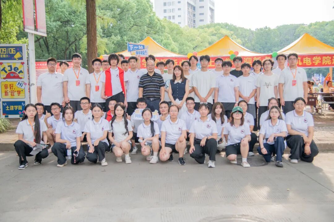 院党委书记刘永胜检查迎新工作并与迎新工作人员合影