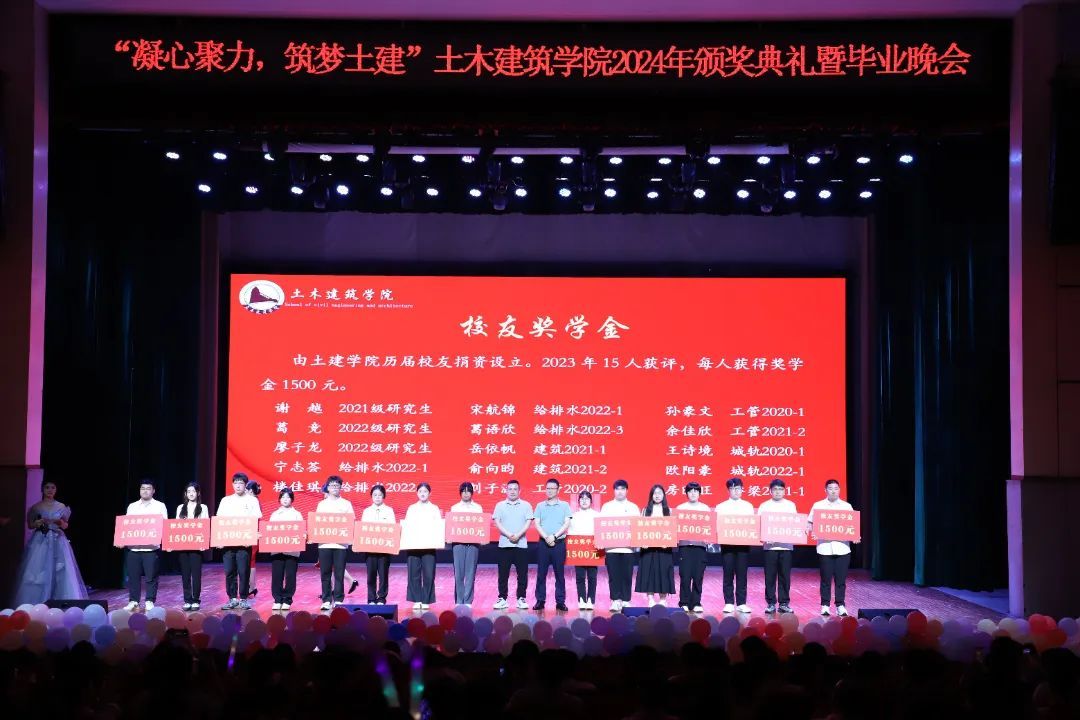 出席本次晚会的领导、嘉宾、校友有:中建四局江西分公司党委副书记、工会主席郭江龙先生,中建四局江西分公司人力行政总监李东东先生,南昌联晟实业发展有限公司总经理、1997级暖通专业唐睿校友,江西聚闻工程技术有限公司董事长、1999级土木工程专业淦家闻校友,中铁上海工程局集团公司江西区域总部总经理、1999级土木工程校友范英华,江西立正建设工程有限公司总经理、1999级土木工程专业谢立校友,江西图揽金属科技有限公司总经理、2004级建筑环境专业李永珍校友,校创新创业学院院长、土建学院党委委员师星老师,校研究生院副院长、党委研究生工作部副部长、学科建设与评估中心副主任朱嘉蔚老师,校学生工作处副处长肖凤莲老师,校对外联络处副处长、校友工作办公室副主任吴亮秦老师,校团委副书记高旭老师,土建学院党委书记陈水生老师,院长庄海洋老师,党委副书记郑轶老师,副院长方焘老师,副院长陈莘莘老师,副院长张季老师,各兄弟学院副书记以及土建学院师生代表1200余人。