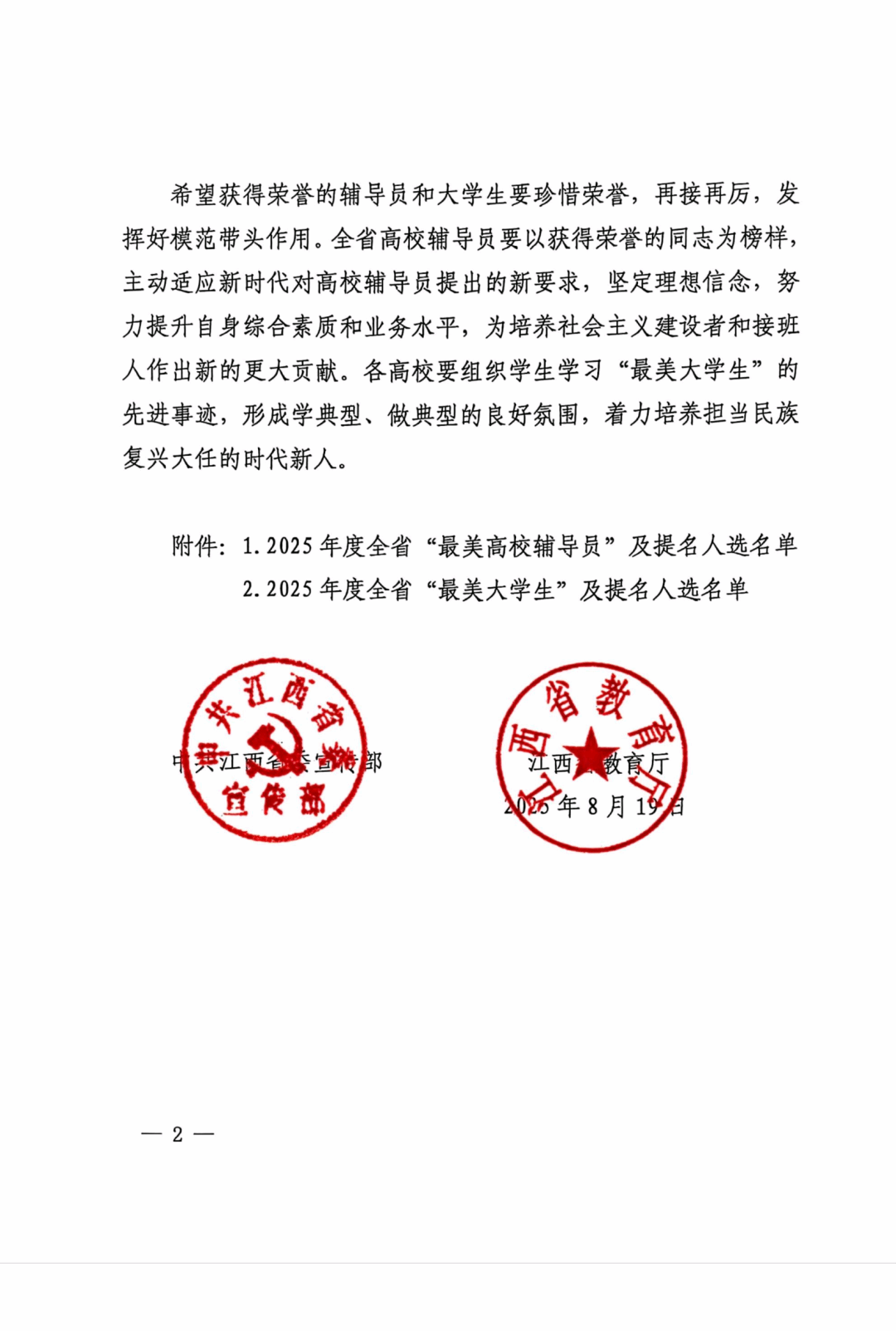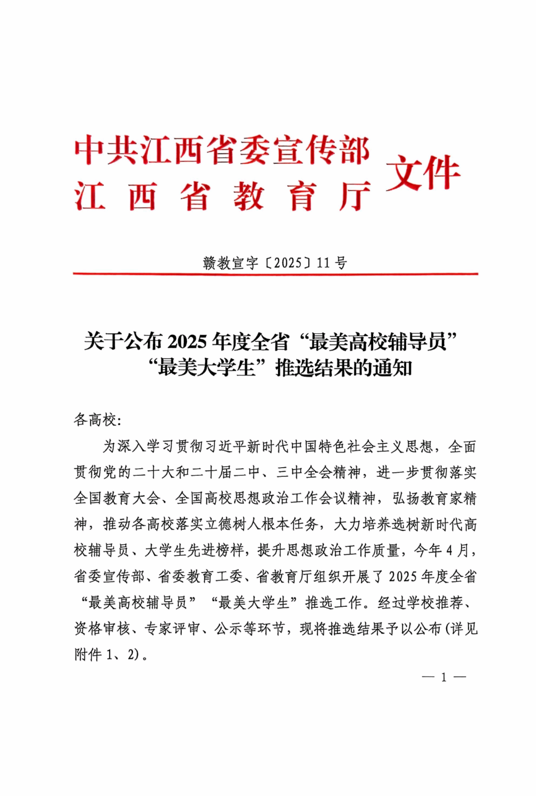近日,中共江西省委宣传部和江西省教育厅联合发文公布2025年度全省“最美高校辅导员”“最美大学生”推选结果,91网站