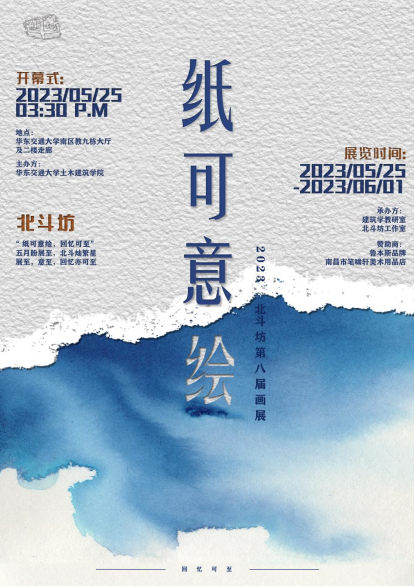 燕子呢喃,景色乍长春昼,睹山水,万花如秀。五月盼展至,北斗灿繁星。本次画展主题为“纸可意绘、回忆可至”,北斗坊主携众坊间成员,赏秀明山水,提笔纵情,纸上绘山河。
